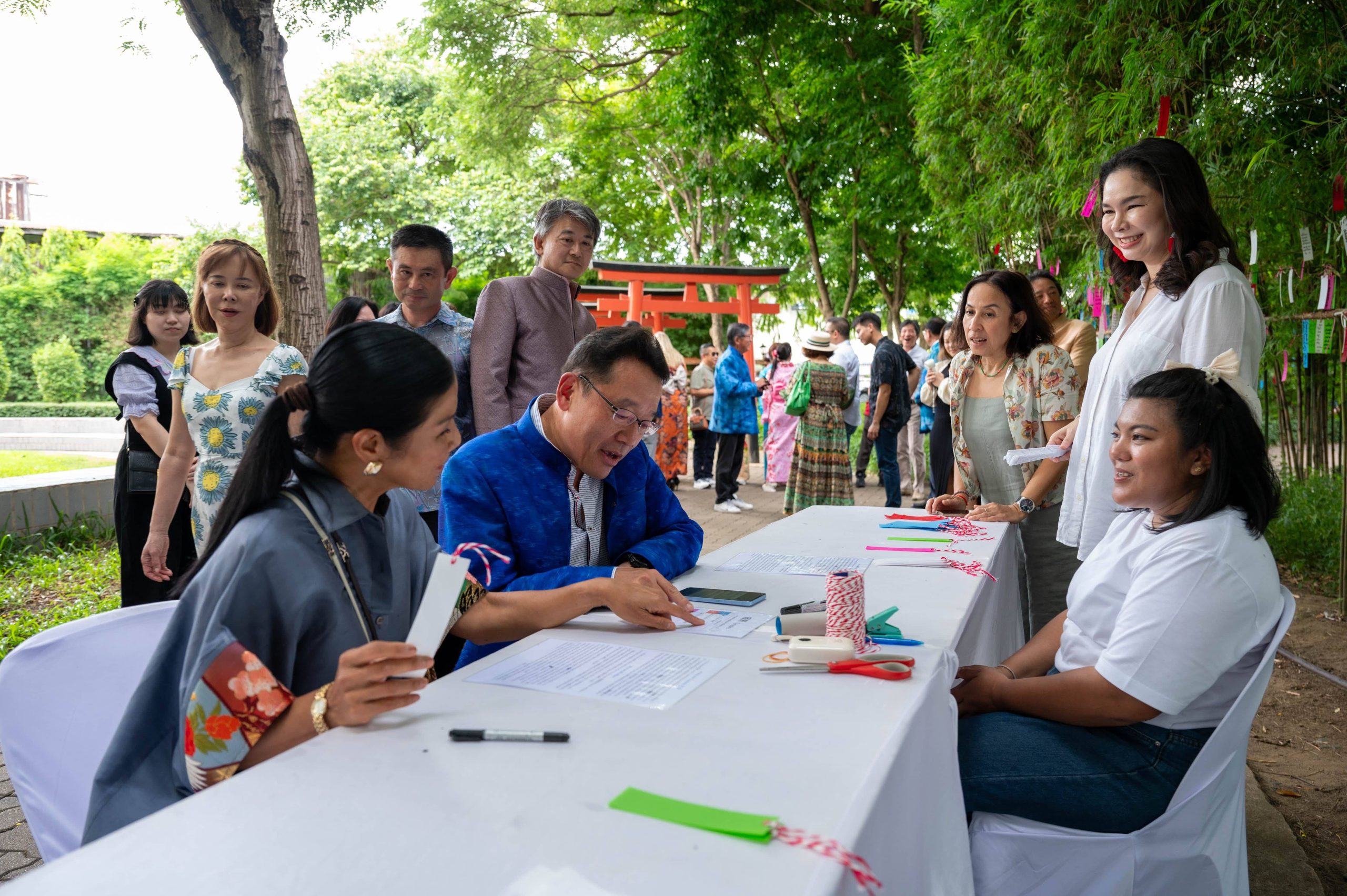 2024 Tanabata Festival (Star Festival) held on July 6-7, 2024 at Japanese Village, Ayutthaya. It was tradition for the visitors to write a wish on a piece of paper called “Tanzuka” and hang them on bamboo tree. There were Yosakoi Sorun performence and omamori origami workshop by Thai-Nishi Institute of Technology, as well as workshop on lanthen painting for visitors.