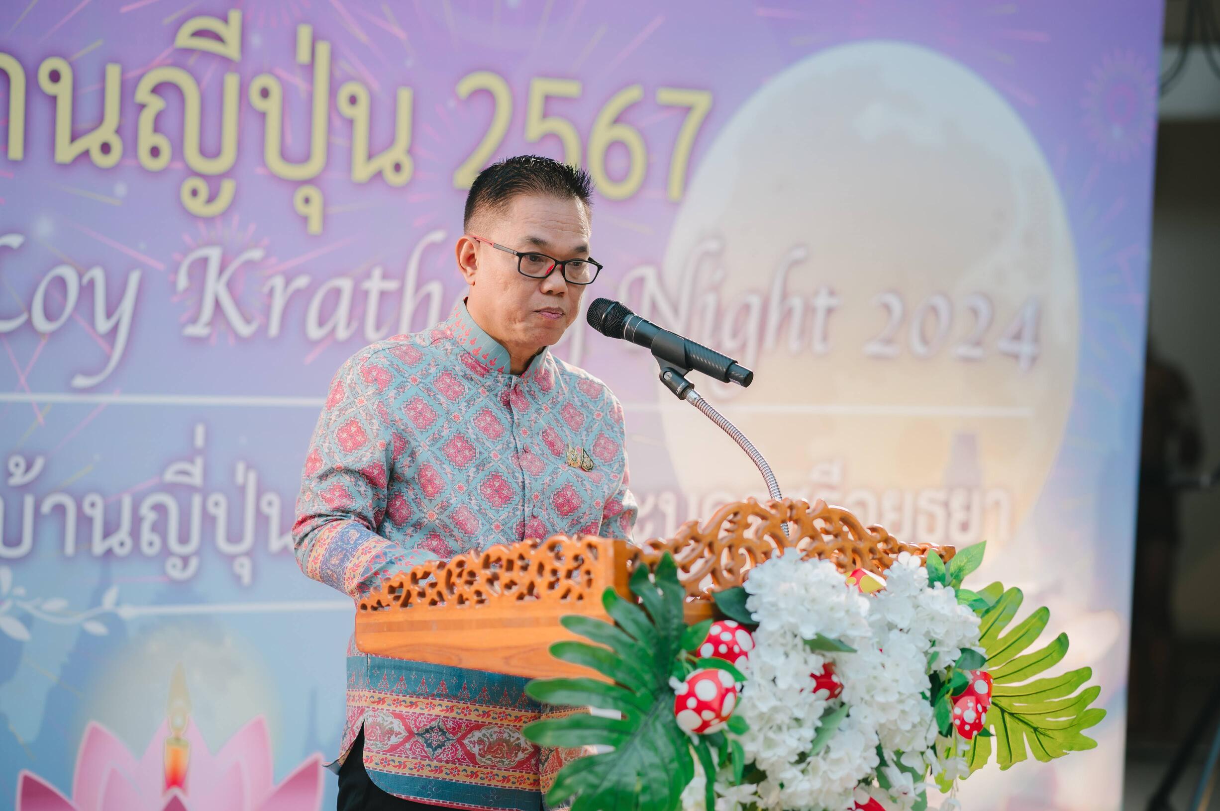 We proudly celebrated the opening ceremony of Loy Krathong Night 2024 at the Japanese Village in Ayutthaya on November 17, 2024. We were honored by the presence of H.E. Mr. Masato Ohtaka – Ambassador of the Embassy of Japan to Thailand, Mr. Kalin Sarasin – President of the Thai-Japanese Association, and Mr. Watchara Krasaechat – Deputy Governor of Phra Nakhon Si Ayutthaya Province, who delivered opening speeches to our esteemed guests and visitors.