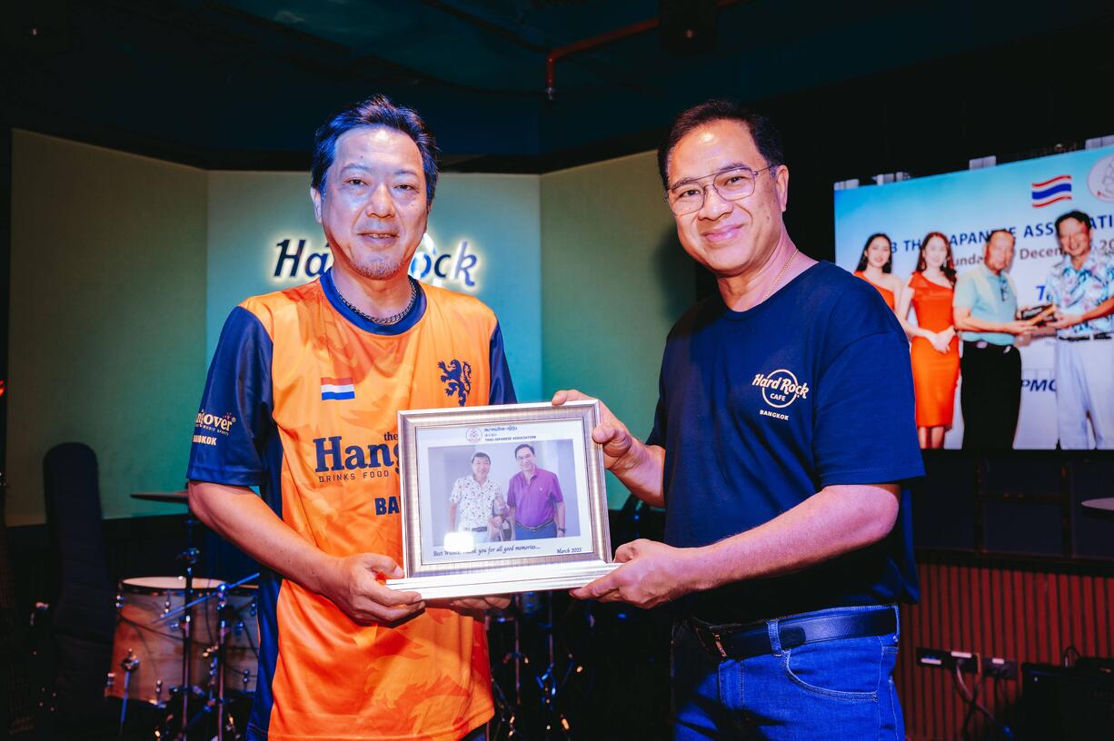 The “Thai-Japanese Association Farewell Dinner” took place at Hard Rock Café, Ratchaprasong, on March 18, 2025, to honor two executive members, Mr. Kozo To and Mr. Kazuo Hidaka, upon the completion of their terms of office. The event was attended by over 60 members, reflecting strong camaraderie and support.